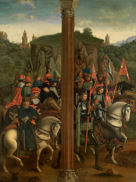 Jan van Eyck (v. 1390–1441) était un peintre flamand dont les innovations dans la technique de la peinture à l'huile ont façonné la Renaissance du Nord. Peintre de cour et chambellan de Philippe le Bon, duc de Bourgogne, il a travaillé à Bruges et a créé des retables, des œuvres de dévotion, des portraits et des scènes richement symboliques admirées pour leur clarté, leur luminosité et leur profondeur spirituelle. Son attention méticuleuse aux détails de surface, la richesse de ses couleurs et sa maîtrise de la lumière ont fait de lui l'un des peintres les plus influents du XVe siècle. Le Retable de Gand, achevé avec son frère Hubert, est un pilier de l'art occidental et une profonde méditation sur la rédemption.