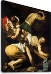 Peinte en 1601 pour la Chapelle Cerasi dans la Basilique de Santa Maria del Popolo, La Crucifixion de Saint Pierre est l'une des œuvres les plus puissantes et révolutionnaires du Caravage. L'Apôtre Pierre, condamné à mort, demanda à être crucifié la tête en bas par humilité, se considérant indigne de mourir de la même manière que le Christ.