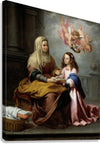 Ce lumineux chef-d'œuvre baroque capture la tranquille sainteté de la formation, de la sagesse et de l'amour maternel. La lumière douce, le détail délicat et la composition équilibrée de Murillo révèlent la sainteté présente dans les actes ordinaires d'enseignement et de soin. C'est une image contemplative qui célèbre l'éducation, la vertu et le déroulement du plan de Dieu au sein du foyer.