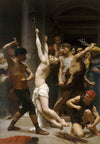 Peinte en 1880 par le célèbre maître académique français William-Adolphe Bouguereau, La Flagellation de Notre Seigneur Jésus-Christ compte parmi les œuvres sacrées les plus puissantes de l'artiste. Aujourd'hui, le tableau est conservé dans le Baptistère de la Cathédrale de La Rochelle en France, où il continue de confronter les spectateurs à la solennelle réalité de la Passion du Christ.
